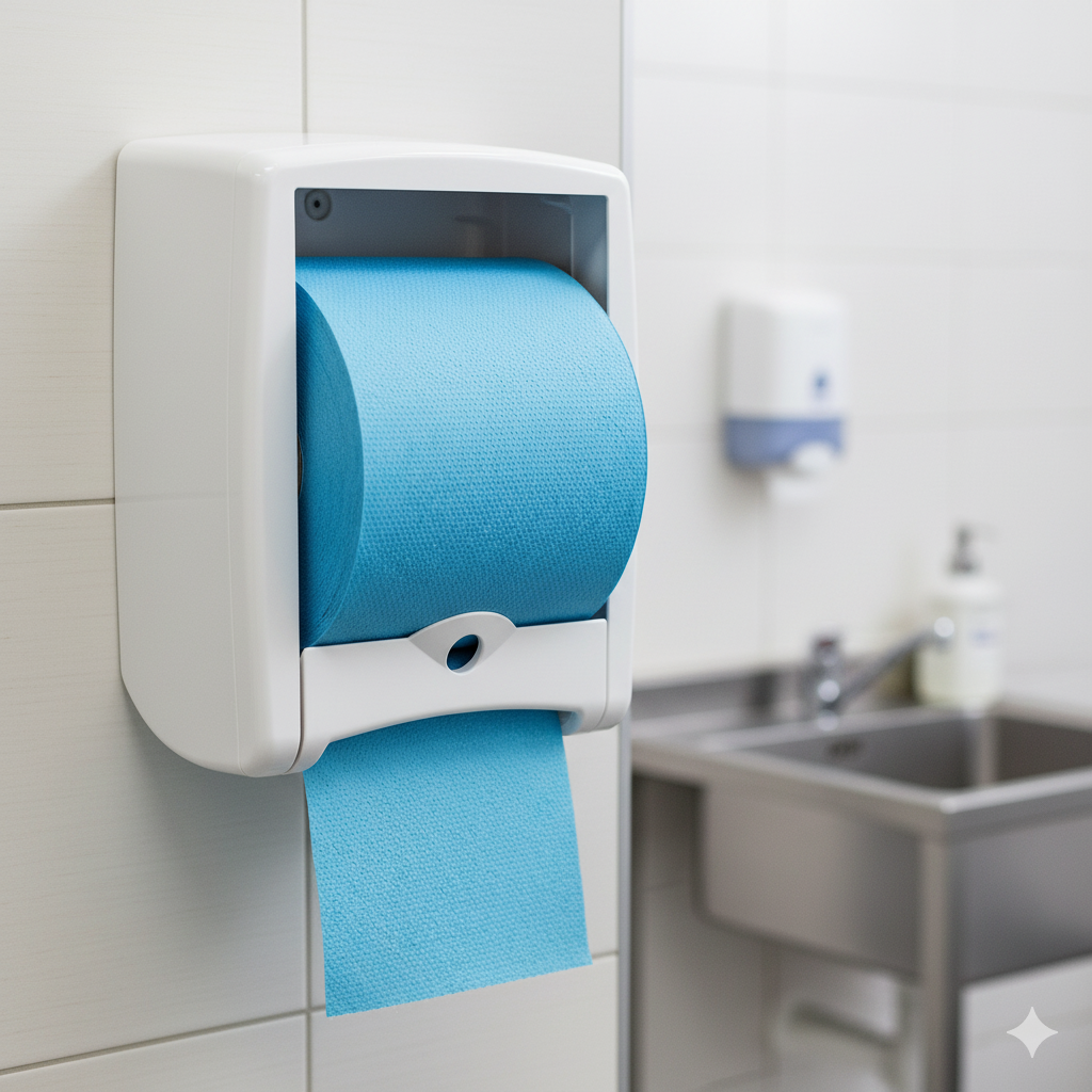 Sapphire Blue Flat Sheet Centrefeed Rolls are manufactured exclusively from Fourstones Paper Mills high quality recycled tissue paper.